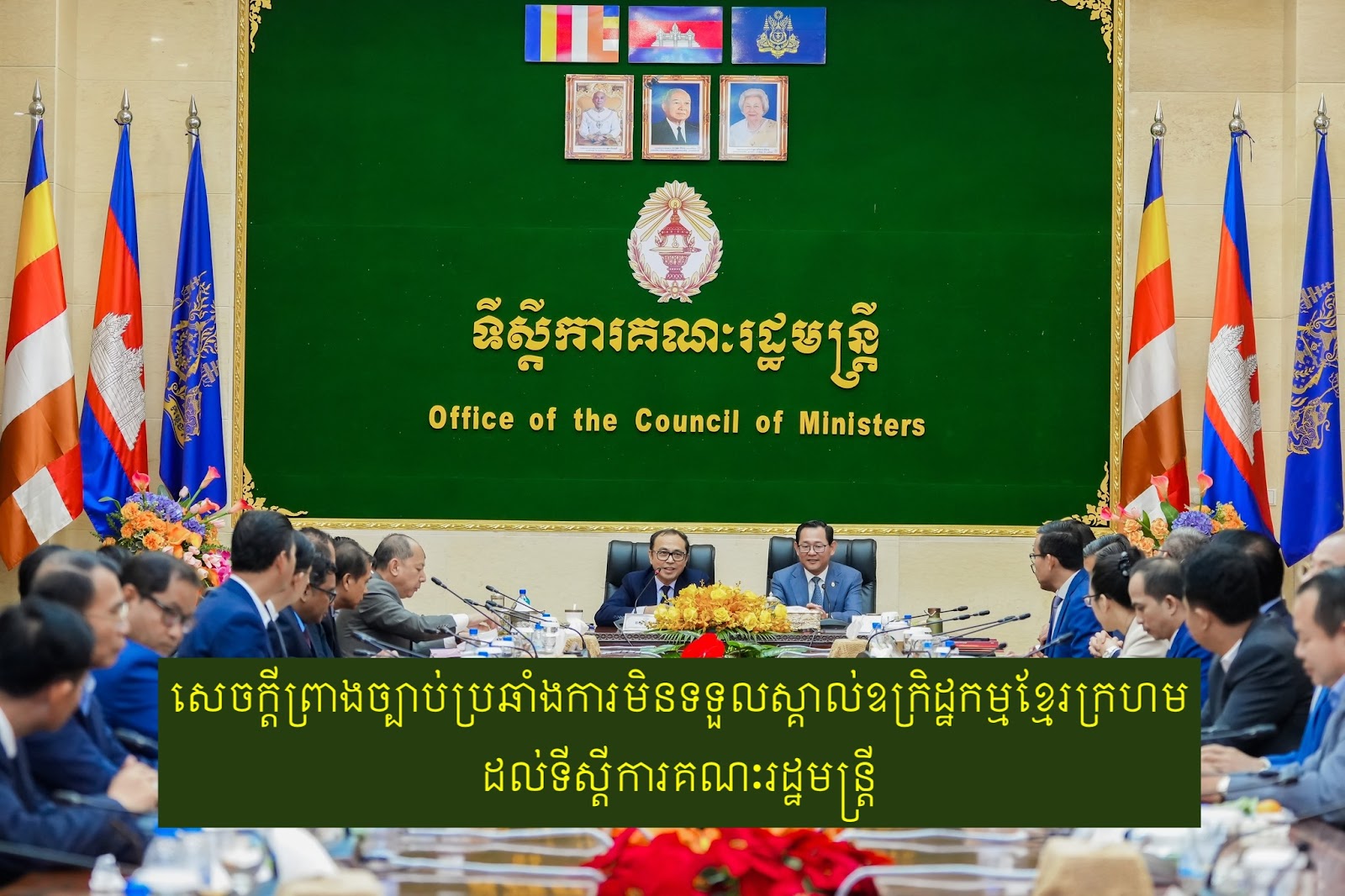 សេចក្តីព្រាងច្បាប់ស្តីពីការប្រឆាំងការមិនទទួលស្គាល់ឧក្រិដ្ឋកម្មដែលប្រព្រឹត្តឡើងក្នុងរយៈកាលនៃកម្ពុជាប្រជាធិបតេយ្យ មានគោលបំណងផ្តន្ទាទោសបុគ្គលមិនទទួលស្គាល់ និងទប់ស្កាត់កុំឱ្យឧក្រិដ្ឋកម្មនៃរបបនេះត្រឡប់មកវិញ កំពុងពិនិត្យដើម្បីដាក់ជូននាយករដ្ឋមន្ត្រីសម្រេច មុននឹងបញ្ជូនទៅរដ្ឋសភាអនុម័ត។